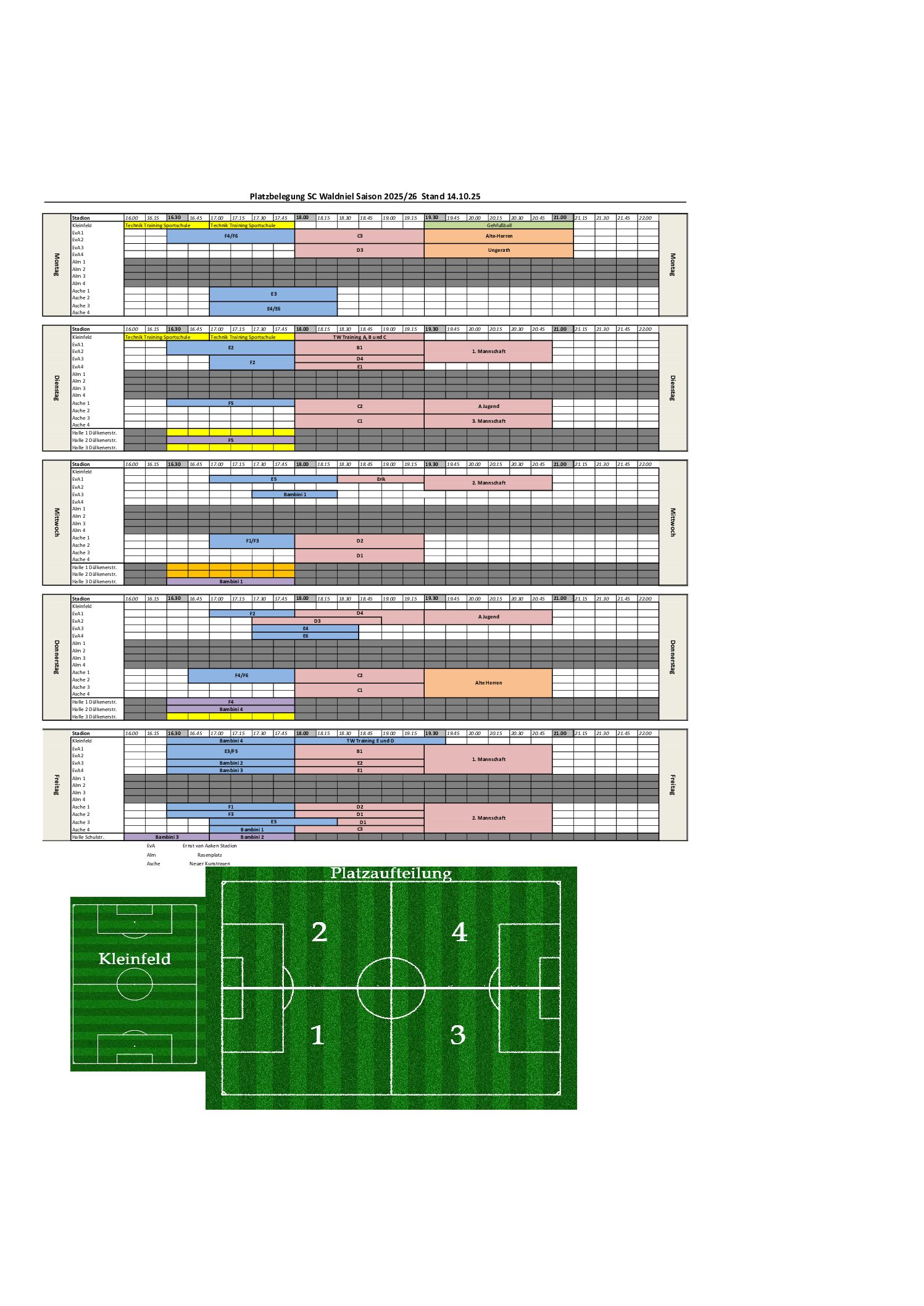 Der gültige Trainingsplan während der Winterzeit.