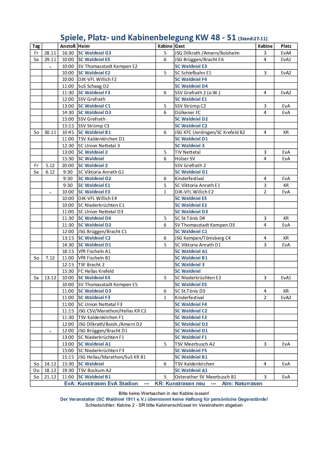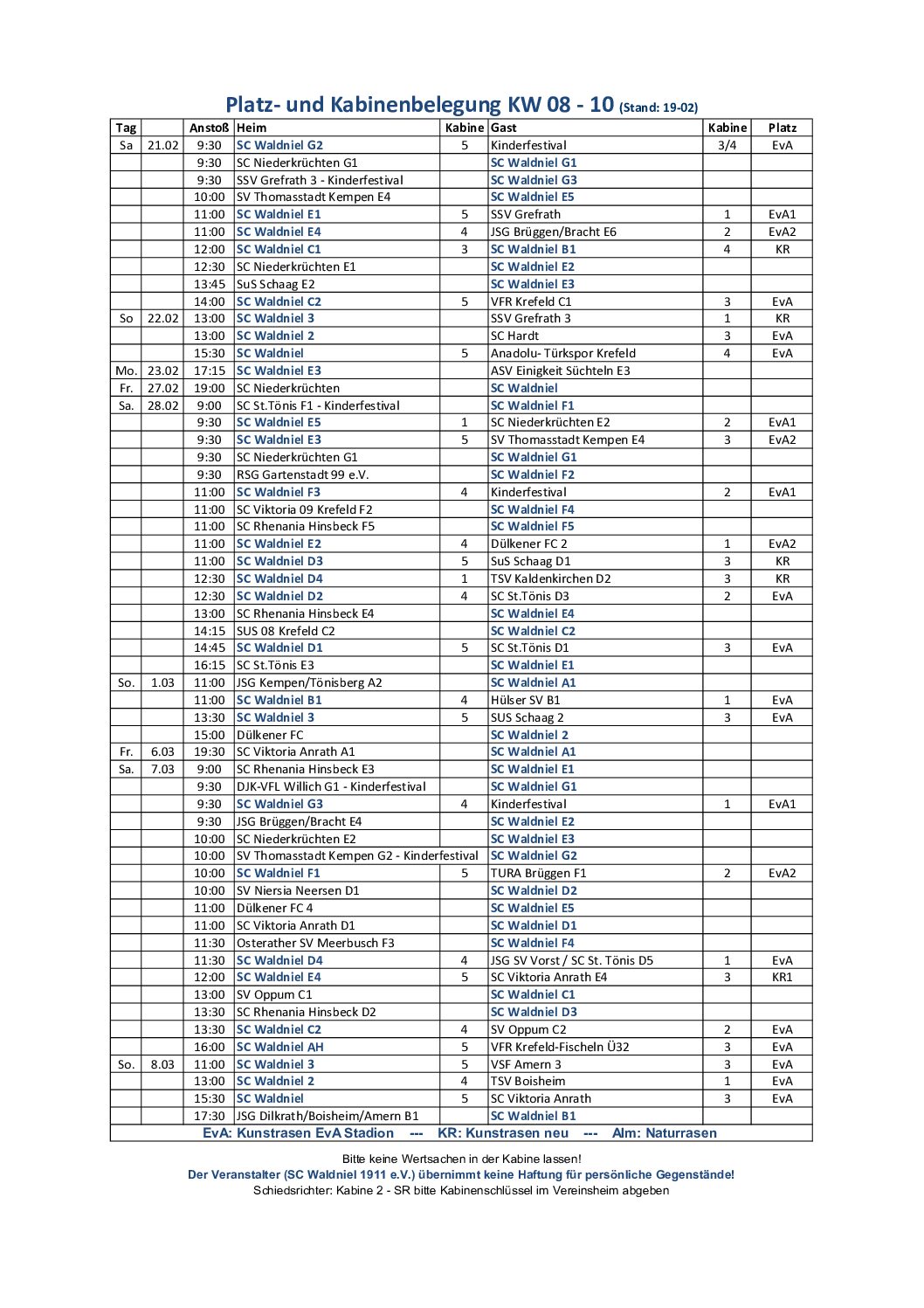 Platzbelegung Winter